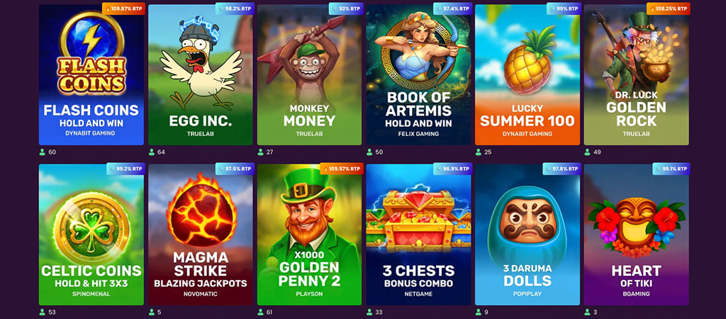 | Legnépszerűbb játékszolgáltatók | Play'n GO, NetEnt, Novomatic, Nolimit City, Pragmatic Play, Big Time Gaming, Push Gaming, iSoftBet, Playson, Playtech, Quickspin, Wazdan, Relax Gaming, Hacksaw Gaming stb. |