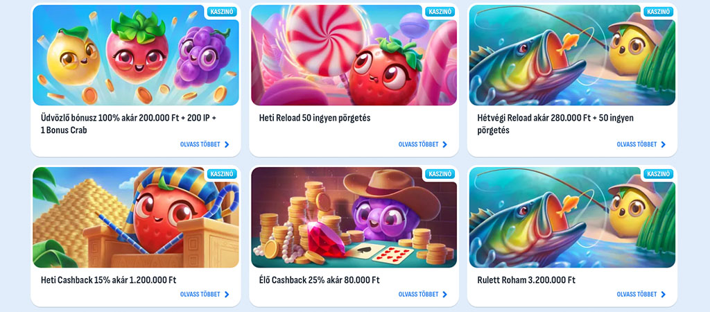 | 🎉Üdvözlő bónusz | 100% akár 150.000 Ft + 200 IP + 1 Bonus Crab |