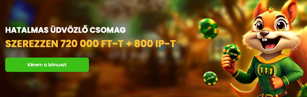 | Négy befizetéses üdvözlő bónusz csomag | 720.000 Ft + 800 ingyenes pörgetés |