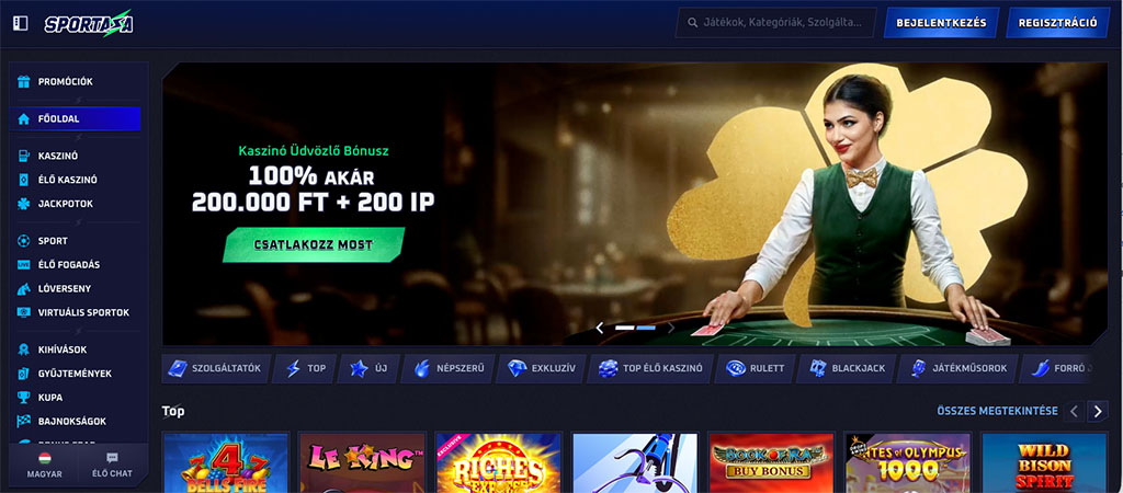 A Sportaza egy izgalmas online kaszinóélményt kínál, amelyben nyerőgépek, élő kaszinójátékok, asztali játékok, kaparós sorsjegyek és egyéb játékok várják a játékosokat.